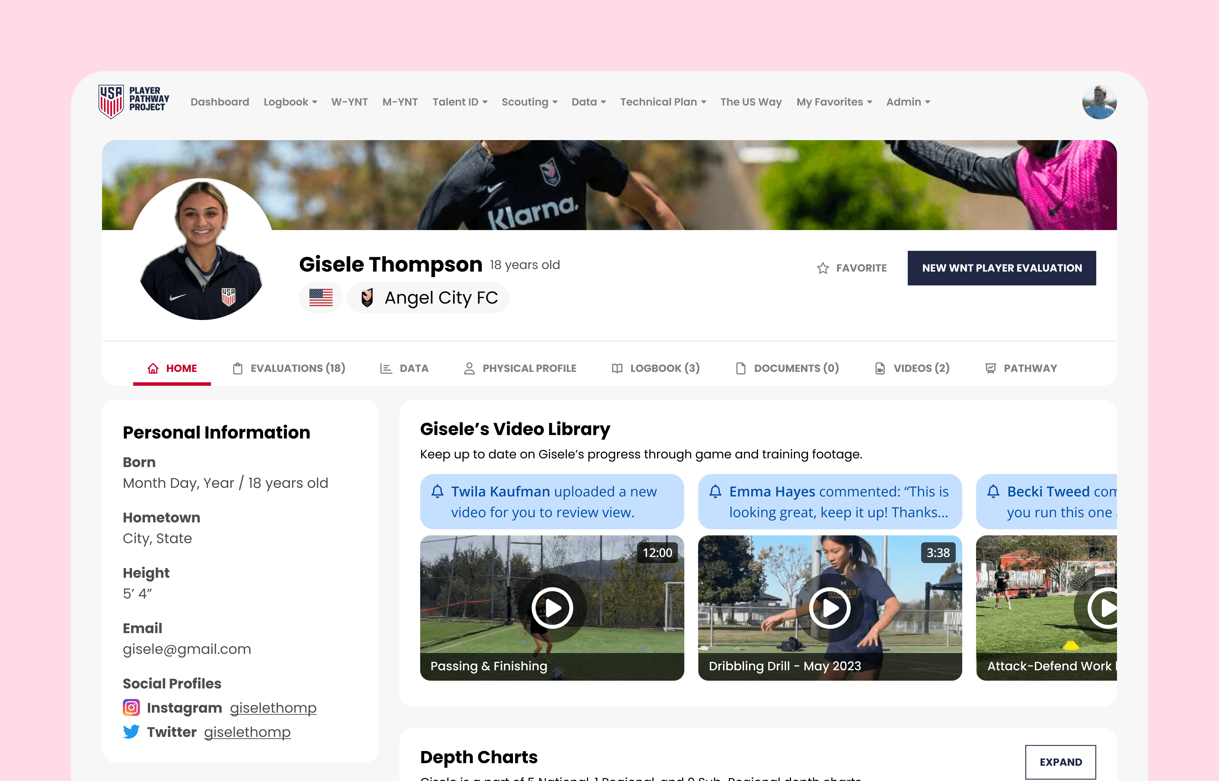 Player Profile Redesign @ US Soccer