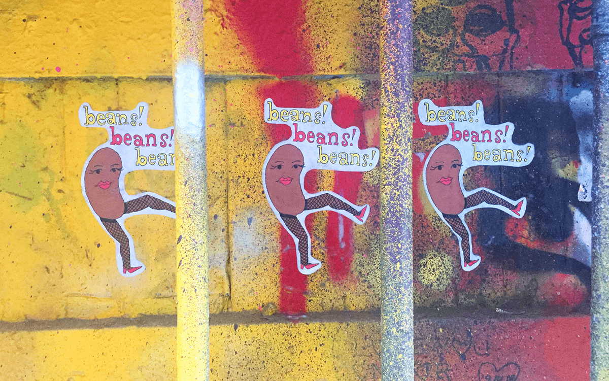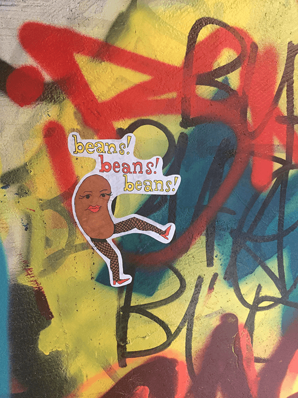 This paste-up of a sexy bean is a street art piece I created in Melbourne, Australia's Hosier Lane. The piece is meant to hold a plurality of ambiguous meanings. It can speak to the objectification of women, beauty standards, feminine performativity, and/or absurdist humor. My reason for using the medium of street art is the way in which the images demand attention from viewers without asking permission to be seen.