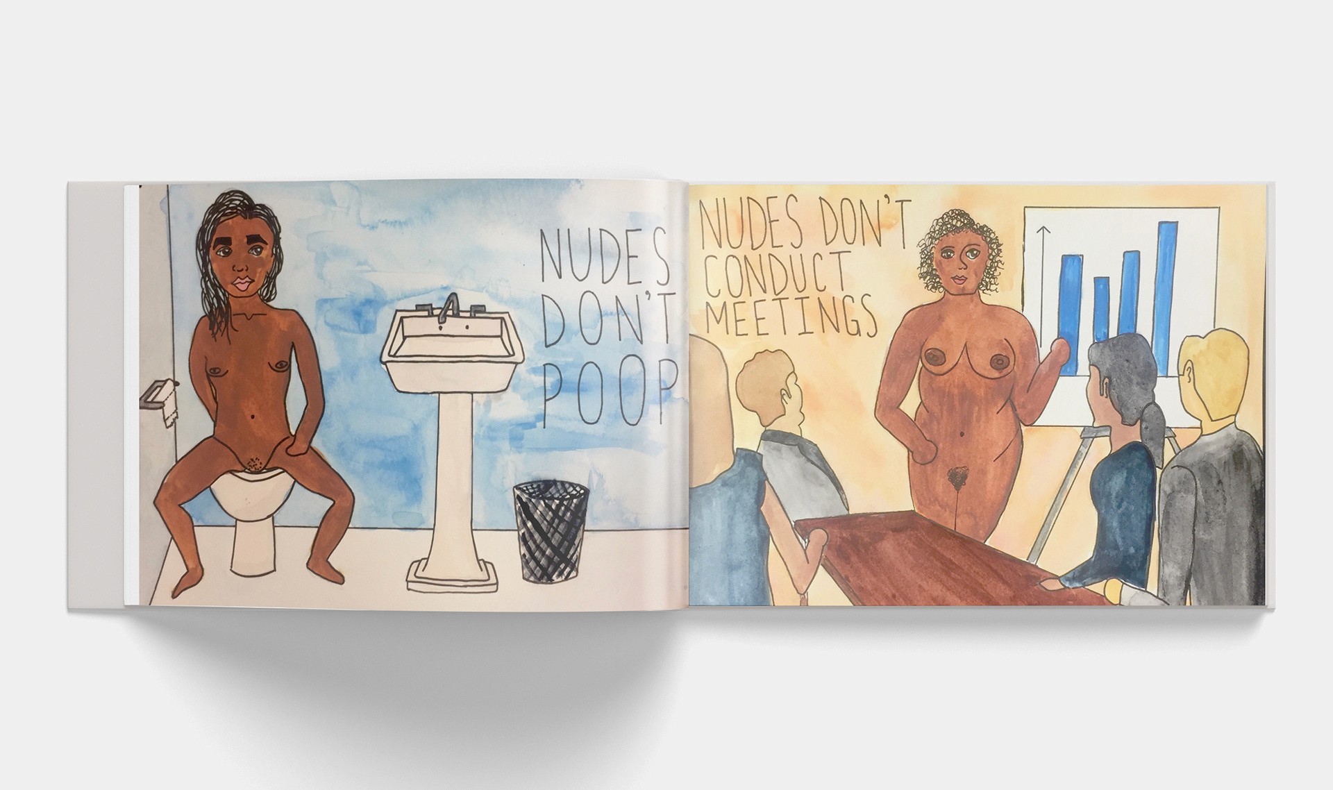 Satirical children's book inspired by the feedback on DuChamp's Nude Descending a Staircase No 2 that "nudes don't walk down stairs, they recline."