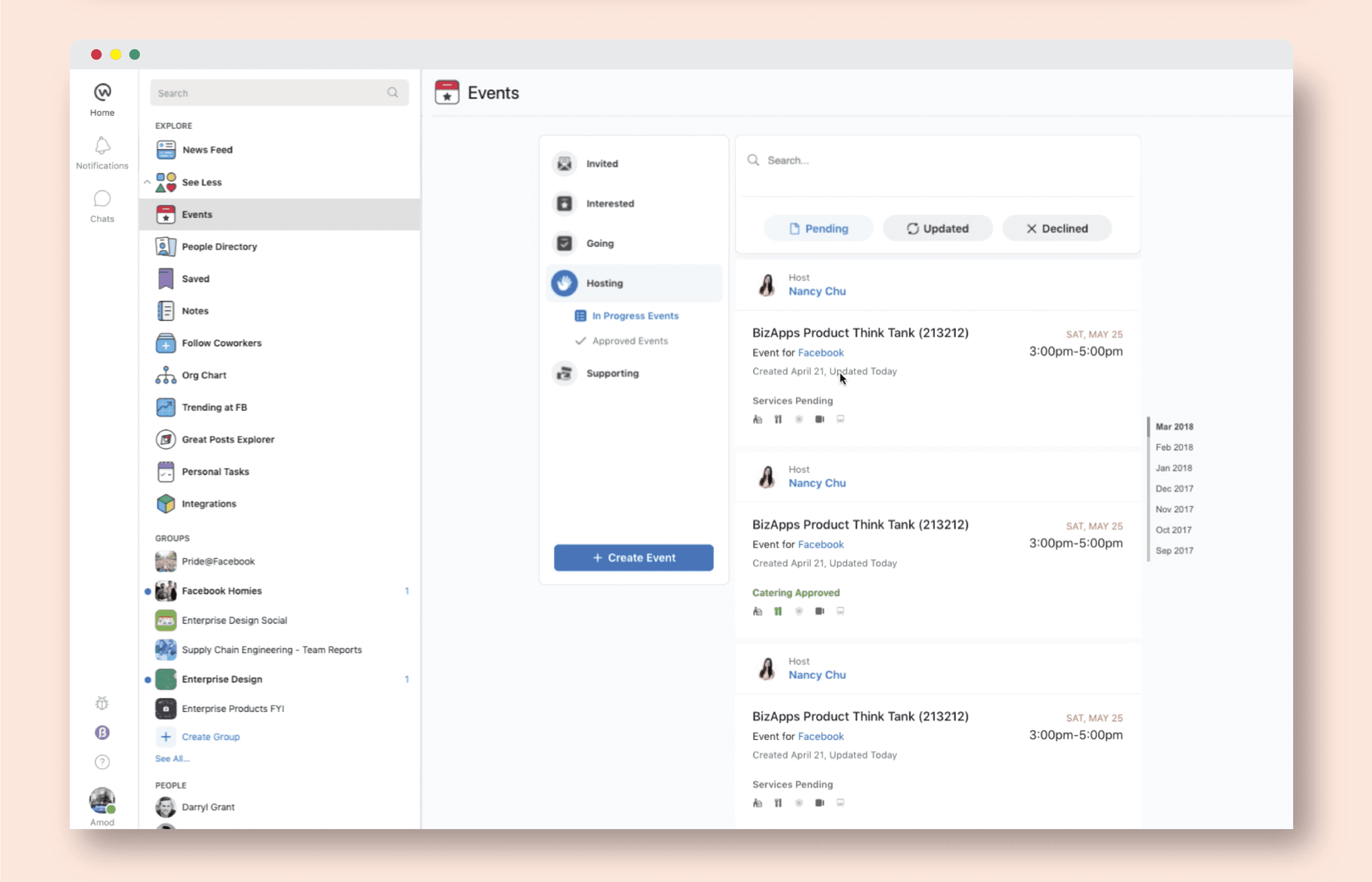 Help Meta employees advertise and plan workplace events. Request and provide locations, catering, transportation, and security.